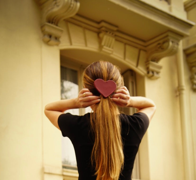 Hair Clip Mon Coeur - Couro Legítimo Cereja